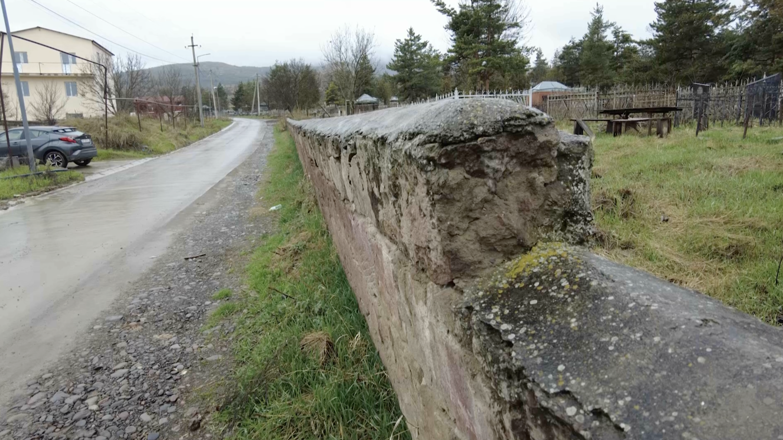 დაზიანებული კედელი სომხური სასაფლაოს მიმდებარედ, რომლის შესახებაც დასმული კითხვა “ქართული ოცნების” დეპუტატებს შორის სავარაუდო ფიზიკური დაპირისპირების მიზეზი გახდა