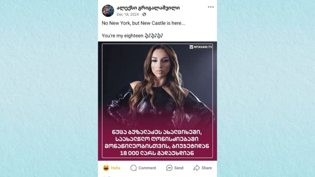 პოსტი, ახალციხეში ნუცა ბუზალაძის წინასაახალწლო კონცერტს ეხებოდა, რომელიც მერიას 18 000 ლარი დაუჯდა.
