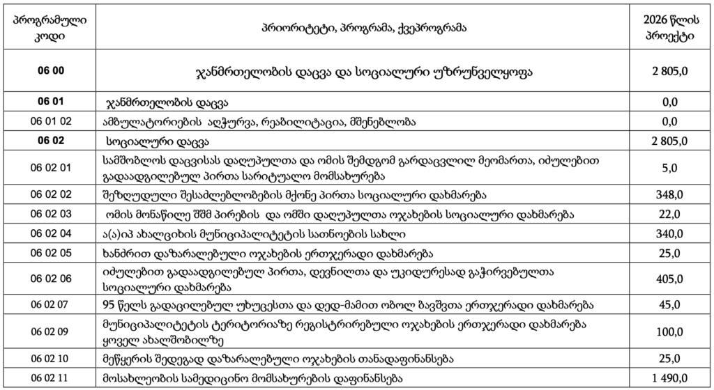 ამ პროგრამის ფარგლებში, 2026 წლის ბიუჯეტის პროექტში ჯამში – 348 000 ლარის დახარჯვა იგეგმება.